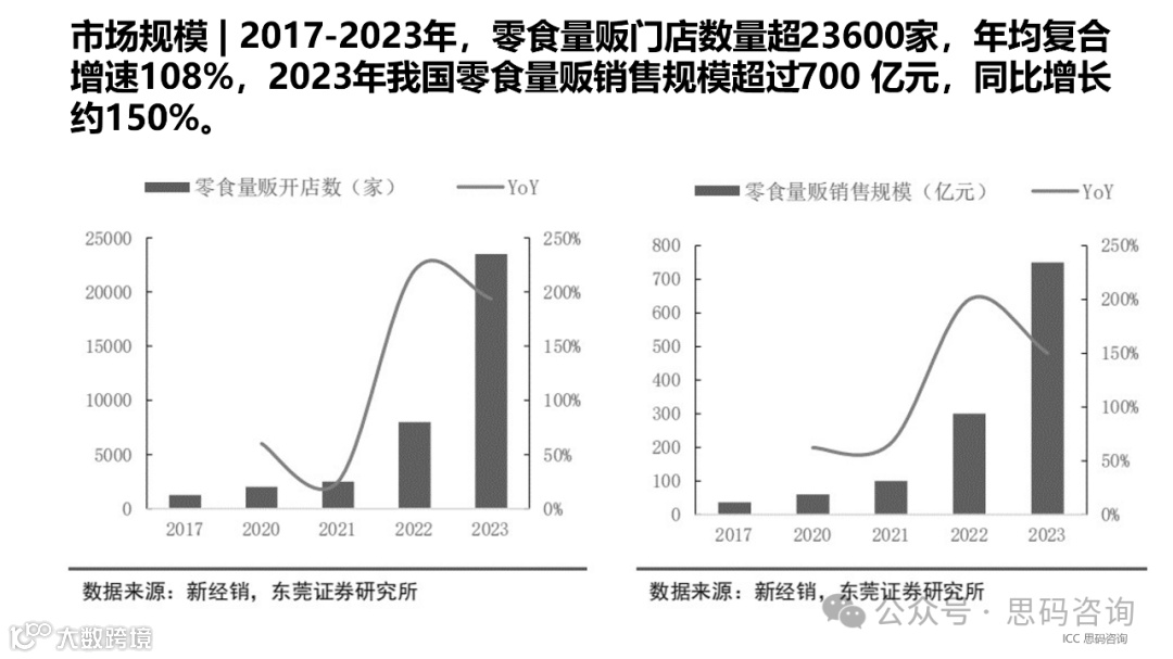 即便要贴牌,估计大家更倾向于和山姆合作,因为山姆的采购量大。像 Costco、奥乐奇这些大型商超也是如此,它们都是大规格采购。而零食量贩店更多的是零散的独立包装,这对很多厂家来说非常不友好,这也是目前面临的最大挑战。