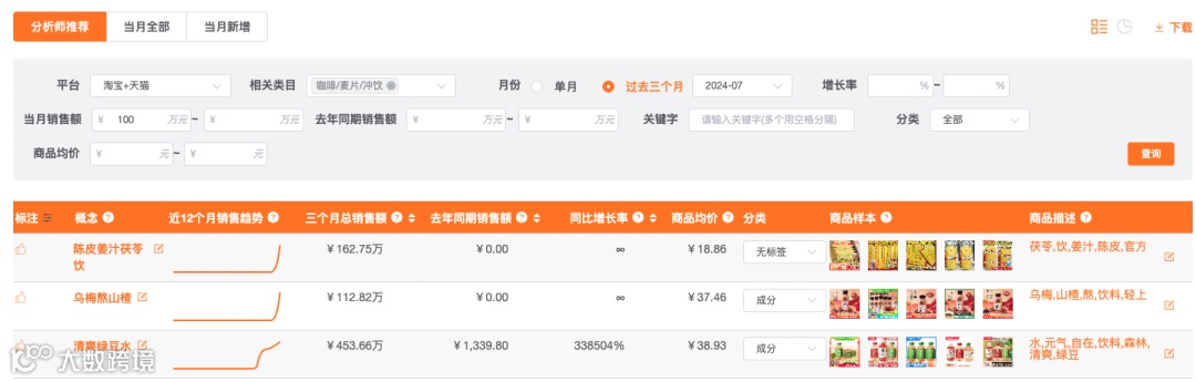2024年5月-7月淘系平台咖啡/麦片/冲饮类目高增长概念