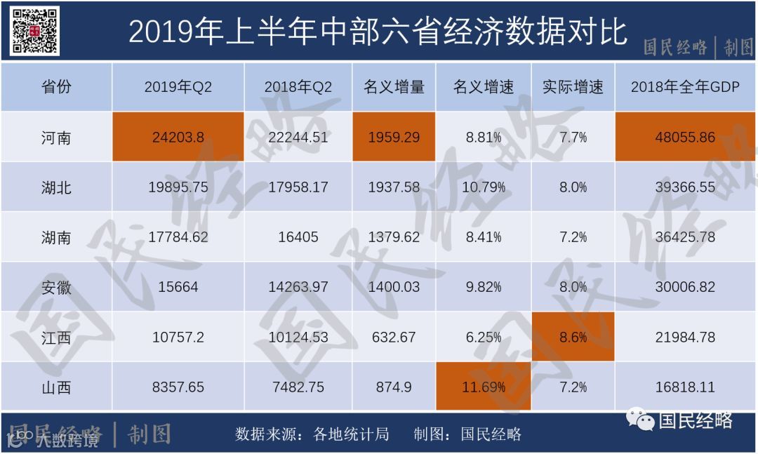 今年上半年,中部六省的经济增速分别为:江西(8.6%)、安徽(8.0%)、湖北(8.0%)、河南(7.7%)、湖南(7.2%)、山西(7.2%)。