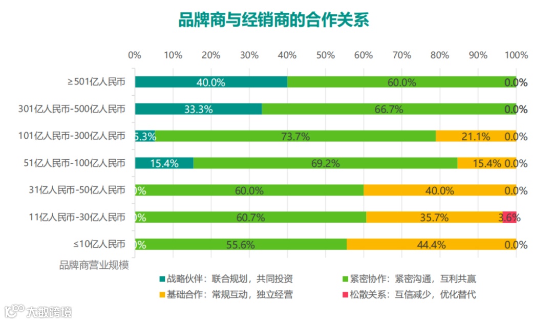 这种梯度预示,品牌商与经销商的合作趋于向更深层次发展,未来亟需通过制度创新和管理优化, 推动双方建立更加紧密和可持续的合作关系。