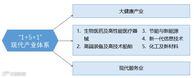 高质量发展离不开产业,产业是高质量发展的主战场。在科学分析全球产业发展大势的基础上,结合泰州产业基础和比较优势,创新提出构建“1+5+1”现代产业体系,为泰州市经济发展、招商选资和项目建设指明了方向。第一个“1”指大健康产业;中间的“5”指生物医药及高性能医疗器械、高端装备及高技术船舶、节能与新能源、新一代信息技术、化工及新材料等五大主导产业;后一个“1”指现代服务业。