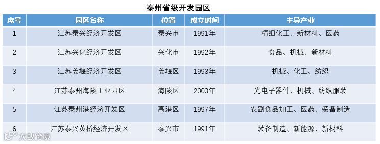 泰州省级开发区有6个,分别是:江苏泰兴经济开发区、江苏兴化经济开发区、江苏姜堰经济开发区、江苏泰州海陵工业园区、江苏泰州港经济开发区、江苏泰兴黄桥经济开发区。江苏省政府2017年出炉的《关于2016年度全省经济开发区科学发展综合考核评价情况通报》显示,泰州省级开发区排名整体前移,创下历史最好名次。其中,泰兴经济开发区、泰州港经济开发区双双进入全省省级经济开发区前10强。在江苏省级经济开发区排名中,我市位次上升最快的是海陵工业园区,跃升5位,跨入前30强;泰兴经济开发区上升了3个位次,排至第7位;泰州港经济开发区和兴化经济开发区均上移两位,前者跃至第9位,后者排至第47位;姜堰经济开发区往前进一位,排名第35位。