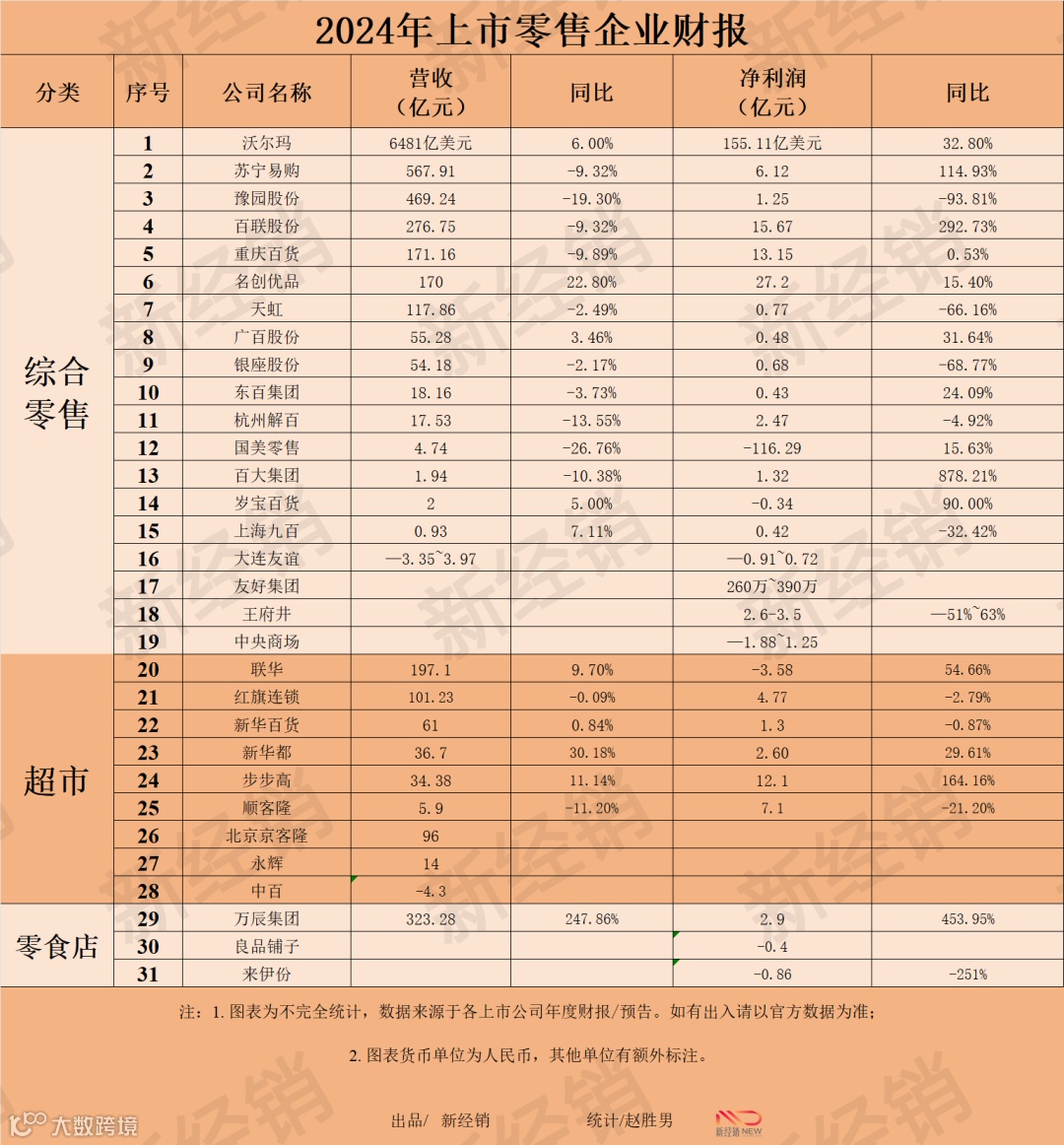 据「新经销」统计的31家零售上市企业中,仅10家实现营收增长,13家利润增长,分化格局进一步凸显。全球化企业凭借全渠道布局逆势突围,而依赖传统模式的企业则在成本高企与消费疲软中艰难挣扎。