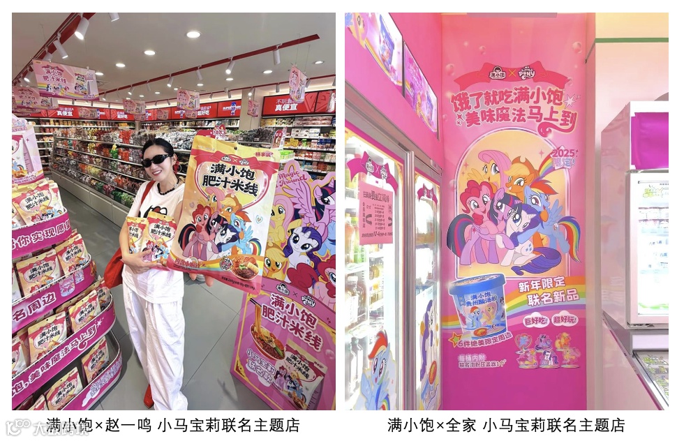 例如,2025年年货节期间,满小饱携手“小马宝莉”IP推出联名礼箱,以趣味设计和高度契合的场景营销精准打透原点人群,同时从Z世代和新锐白领强势破圈到精致妈妈,吸引到了更多消费群体。