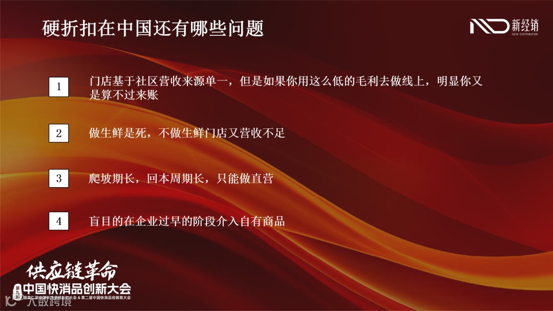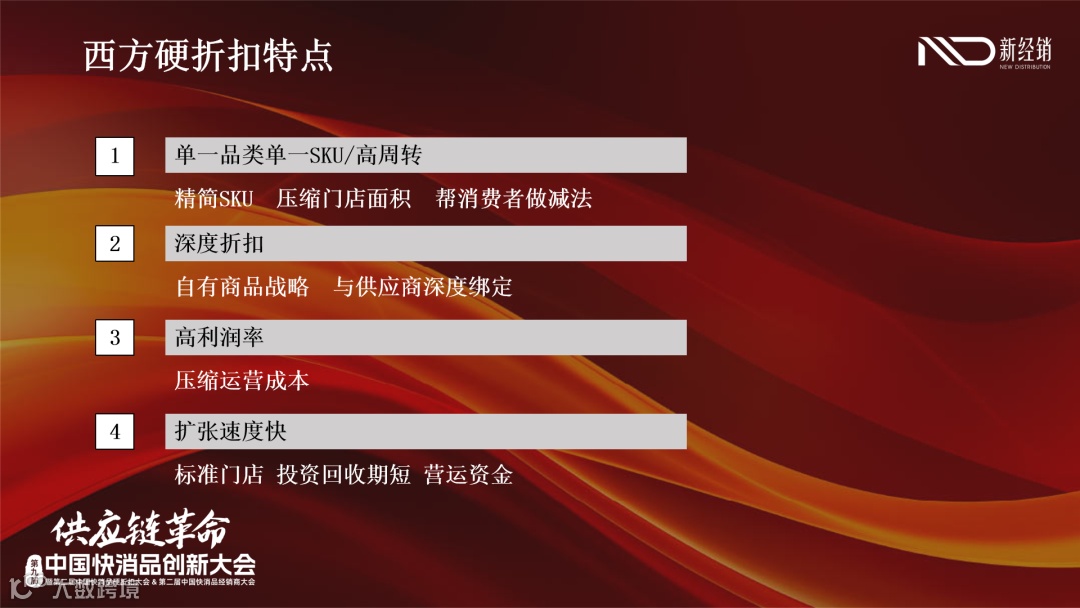 第四是促销,西方传统的硬折扣讲的逻辑是不做任何的促销,但是今天在中国不做促销绝对不行,中国硬折扣解决的问题是门店营收问题,是要做增量问题,还不是抠成本的问题。并且在中国有很多工具可以用,货源体系可以用,私域可以用。