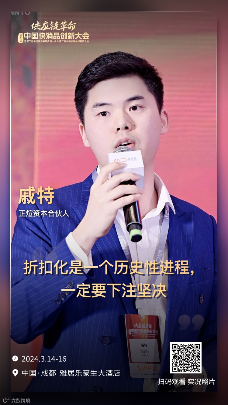 在第二届中国快消品硬折扣现场,二十多位嘉宾围绕2023-2024中国硬折扣行业的发展进行了探讨。其中,正煊资本合伙人戚特先生在会上的重磅分享——《从中外对比看中国硬折扣商业模型的演进》,引起了现场诸多从业者热烈讨论。