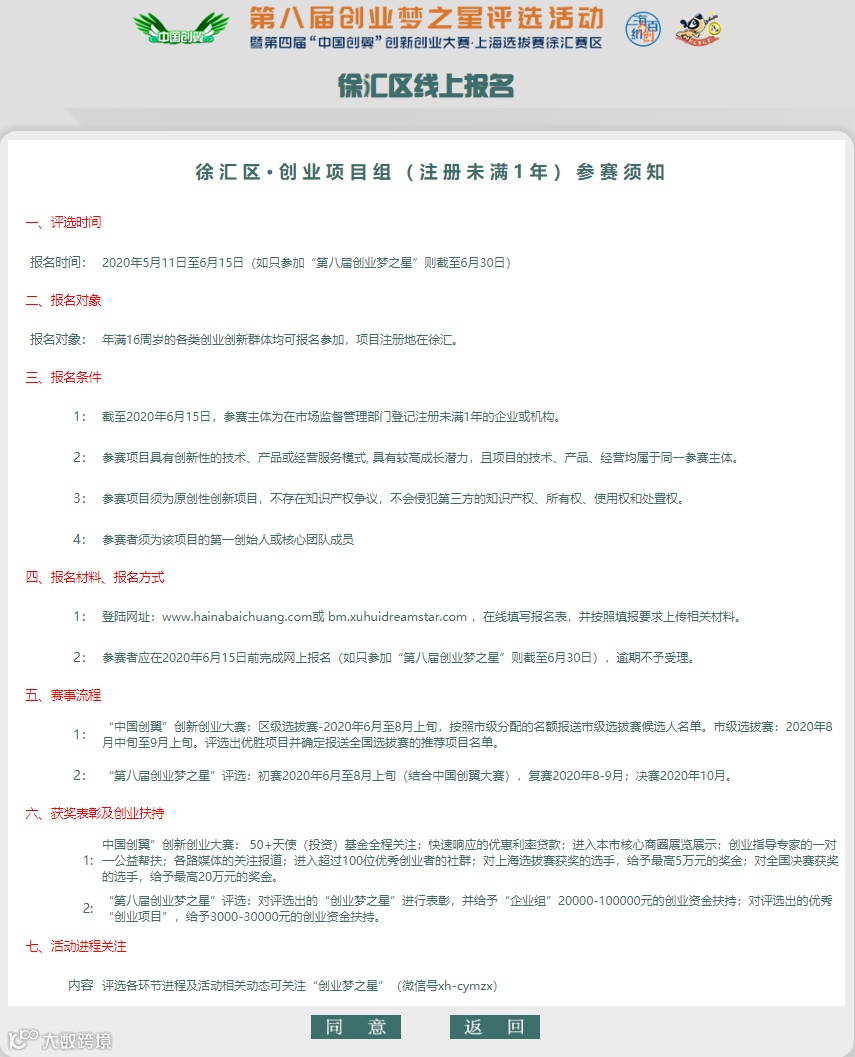 报名时间:2020年5月15日至6月30日(如需参加第四届“中国创翼”则截至6月15日)