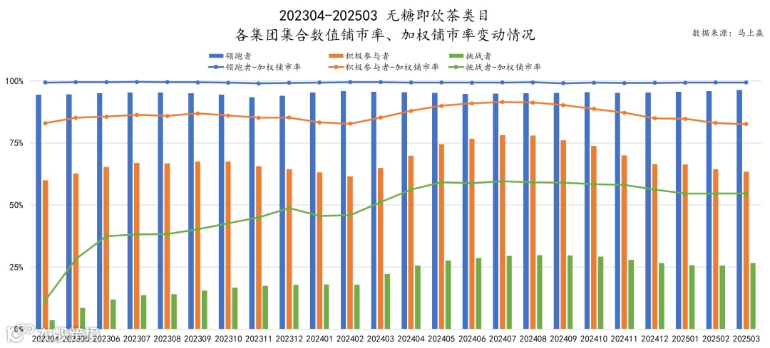 从铺市率来看,领跑者始终维持高位稳定,其铺市率增长空间已经相当有限;积极参与者在2024年夏季开就提升了铺市率,但进入淡季后有一定回落迹象;挑战者的铺市率则稳步爬升,尽管绝对水平仍低,但也意味着更大的成长空间