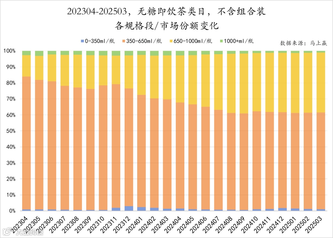 在无糖即饮茶市场中,单件容量提升已成为主流趋势,且这一变化的速度显著快于价格上浮。