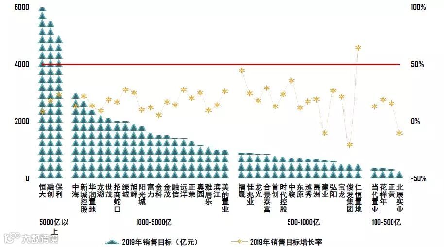 注:2019年销售目标增长率以2018年房企公布合同销售额为基数