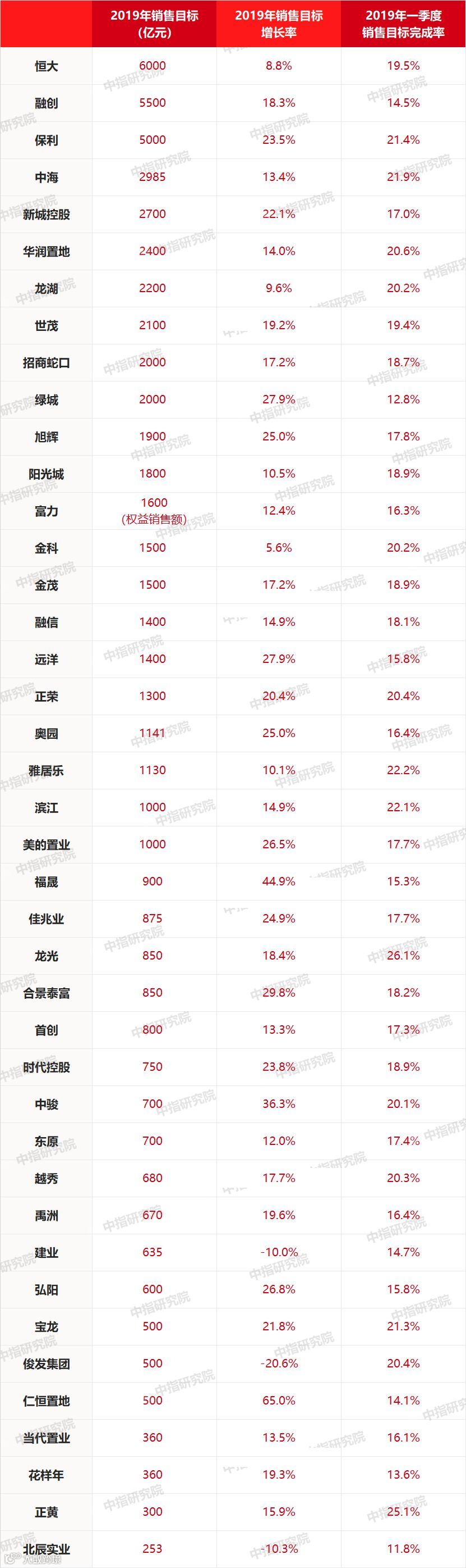 附:41家房企2019年销售目标、销售目标增长率及一季度销售目标完成率
