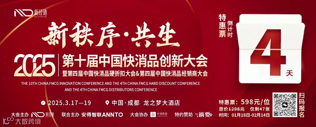 2025年3月17日-19日,【新秩序·共生】第十届中国快消品创新大会暨第四届中国快消品硬折扣大会&第四届中国快消品经销商大会,将在中国成都盛大启幕!