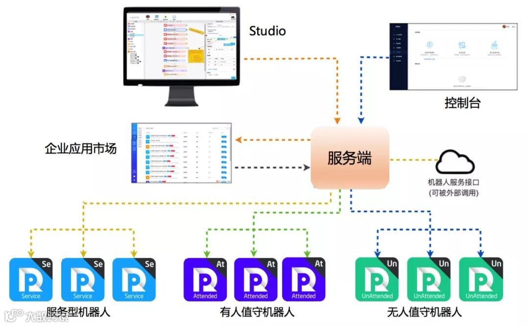 ②无人值守机器人:通过程序设定好的时间执行,全流程无需人参与,全程由机器人自主完成,目前往往通过部署在云端执行,只需在控制台获得无人值守机器人执行后的返回结果即可;