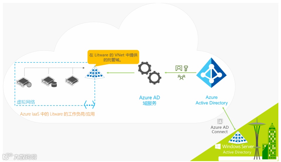 接下来,我们通过以下两类典型场景为大家举例说明Azure AD DS 的工作原理: