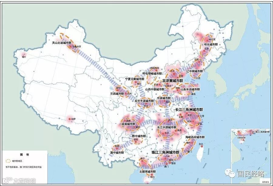 这19个城市群定位不同、成熟程度不一,有的规划已经出台,有的还停留于概念,有的尚不具备形成城市群的条件。这是19个城市群及其中心城市: