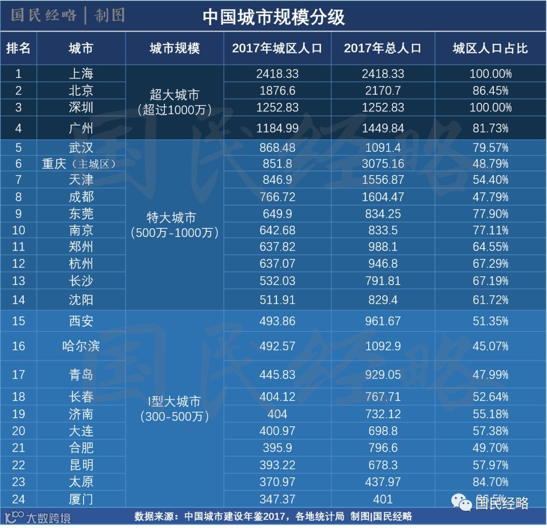在中国,城区人口超过1000万的可被视作超大城市,目前只有北上广深具备这个资格。