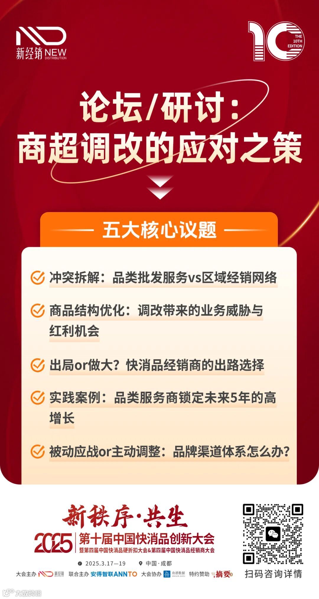 3月17日-19日,第十届中国快消品创新大会将在成都举办,同期将举办【商超调改的应对之策】论坛研讨会,深度探讨调改背后带来的一系列问题和应对措施。