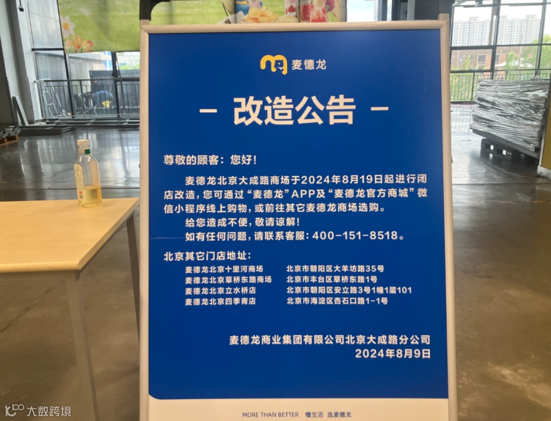 上个月的8月19日,位于北京大成路商场的麦德龙也宣布了闭店改造。