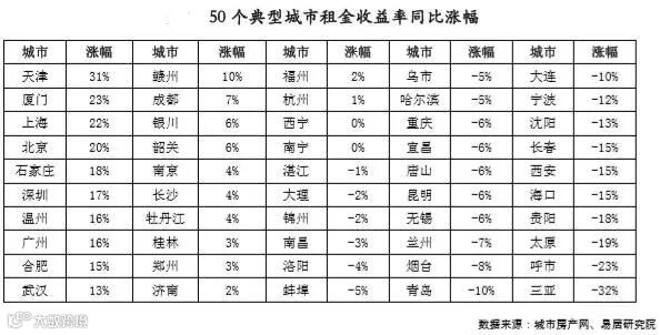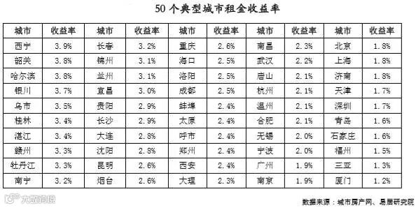 50城租金收益率排行:西宁领跑,厦门垫底