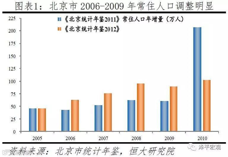 尾数逢5的年份为约1%人口抽样调查,俗称“小普查”,数据相对准确;其他年份则为约1‰的人口变动情况抽样调查,数据偏差相对较大,一些地区会根据小普查和人口普查数据对中间的非普查年份数据进行调整。比如,根据《北京市统计年鉴2011》,2010年北京市常住人口增量达207万,远高于2006-2009年54万的年均增量;但《北京市统计年鉴2012》则将2006年~2009年年均增量上调至81万,2010年常住人口增量下调至102万。