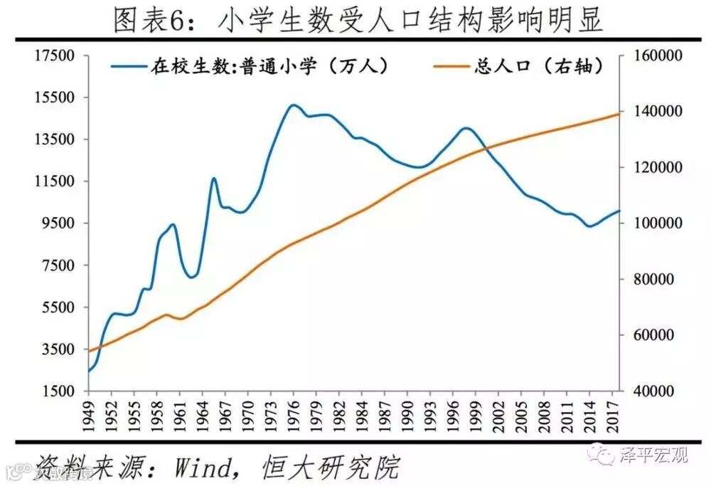 除人口流动外,在读小学生人数变动也受人口结构变化、地区入学政策及教育资源供给等影响。从人口结构看,与1949年建国后三波婴儿潮对应,中国小学在校生数经历了1960年、1975年、1997年三次高峰,此后由1997年的13995万逐年下降到2013年的9361万,后触底回升至2017年的10094万。该时期,全国绝大多数城市小学生数持续下滑,如北京从1994年降至2006年,上海从1993年降至2007年,因此不可能简单通过数据纵向比较判断人口流入情况。