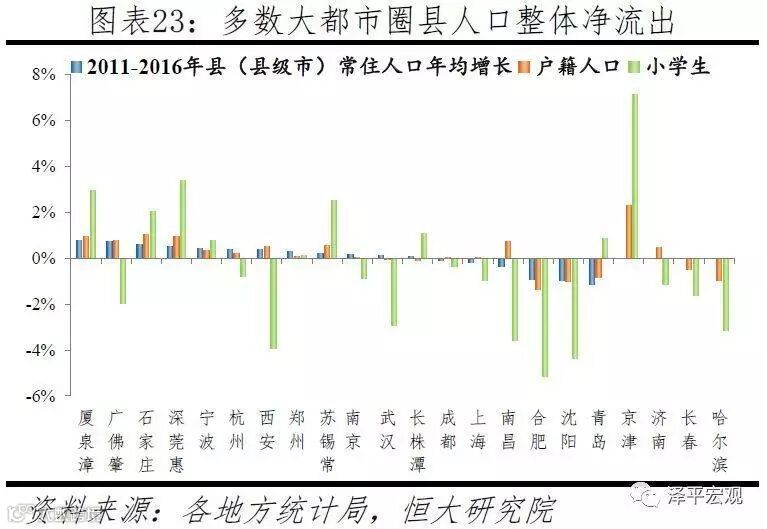 3)对房地产市场,当某地常住人口减少或增长低于自然增长、但户籍人口和小学生明显增长,则该地区的购房需求不一定下降,甚至可能会上升。
