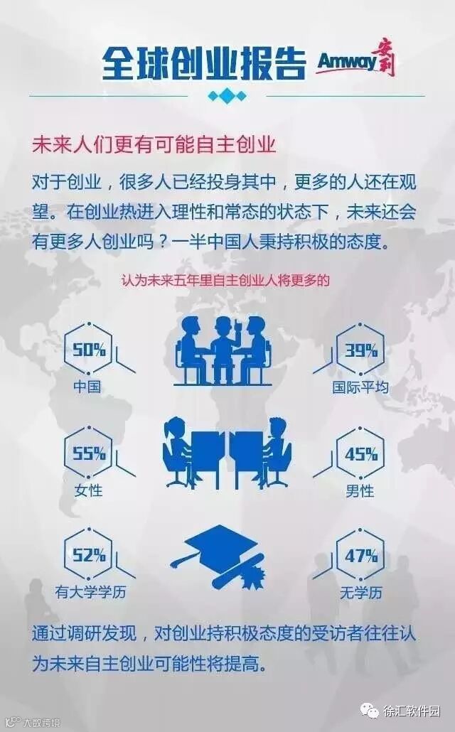 《安利全球创业报告》由美国安利公司支持德国慕尼黑工业大学主导完成,相关调研已连续开展9年,2016年调研数据已覆盖至全球45个国家和地区的5万多名受访者。而安利创业指数,则是一个综合反映创业者渴望度、可行度和抗压性的核心指数。