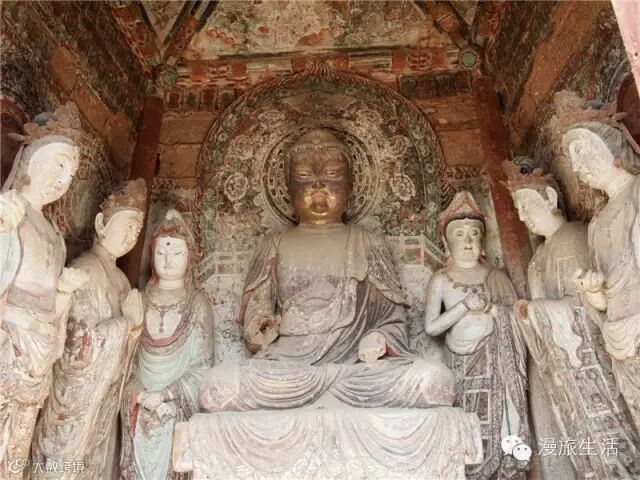 石窟建筑完全按照汉地传统风格,没有莫高窟的中心塔柱似洞窟。特别建议观看的重点是北魏窟,秀骨清像气息极为突出。135窟北魏,横长方形平顶窟,其独特之处是前壁上部开三个明窗。全窟共有造像17身,正壁中龛泥塑一佛二菩萨和窟左石雕一佛二菩萨,都是北魏代表作品。37窟隋,龛内塑坐佛一身,其中右胁侍菩萨,顶蓄高髻,面容羞涩祥和,形体修长,双手自然交叉于胸际,表现手法简练、生动,是麦积山隋代造像的精品。著名美学家王朝闻先生对此窟塑像有专文赞誉。