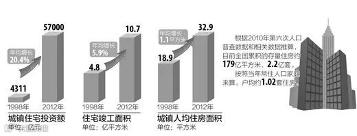 2012年的《政府工作报告》也指出,到2012年底,中国城镇人均住房面积达到32.9平方米。