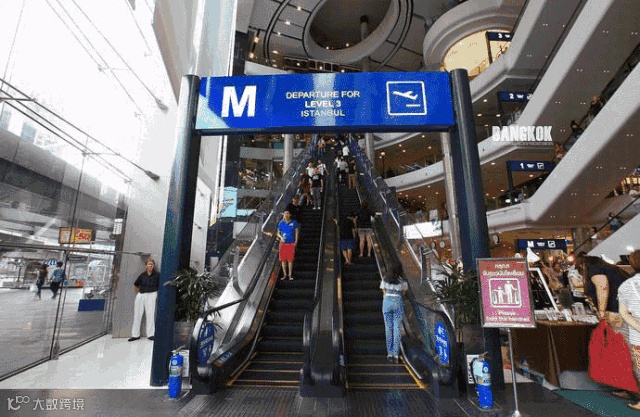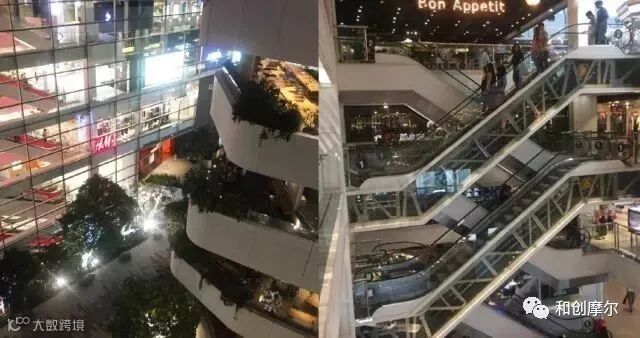 动线除了具备引导功能之外,还有景观功能。泰国商场中的扶梯,或成为餐饮的外部景观,或成为工业风设计的一部分,艺术感十足。