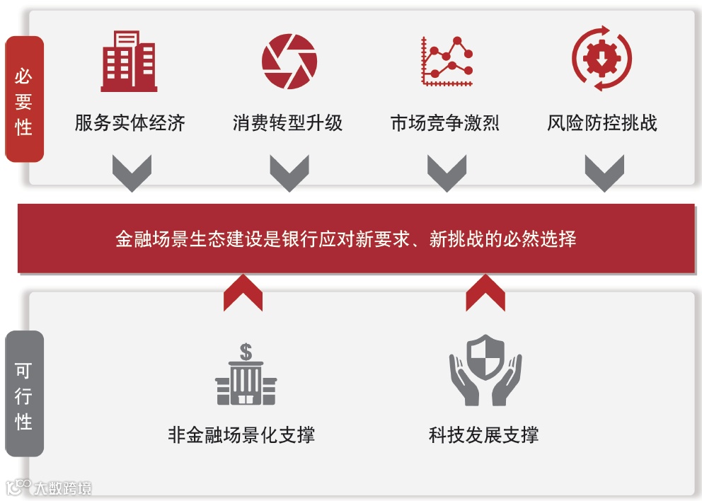 银行通过支付业务的输出和生态化场景的构建,将金融服务嵌入各个细分场景并进行渗透,并且逐步建立起与场景应用方和终端客户相联系的桥梁。同时获客与服务的渠道也逐步虚拟化,不再局限于自己的手机银行、微信等银行自有渠道,而是通过支付输出、页面输出等方式通过场景合作方的渠道来进行批量获客与服务。这极大地降低了银行获客与服务的成本,快速提升了银行自身的服务能力,并且能够基于客户行为数据的分析,更加精准地向客户营销其他金融产品与服务,对风险的控制也更加有效。
