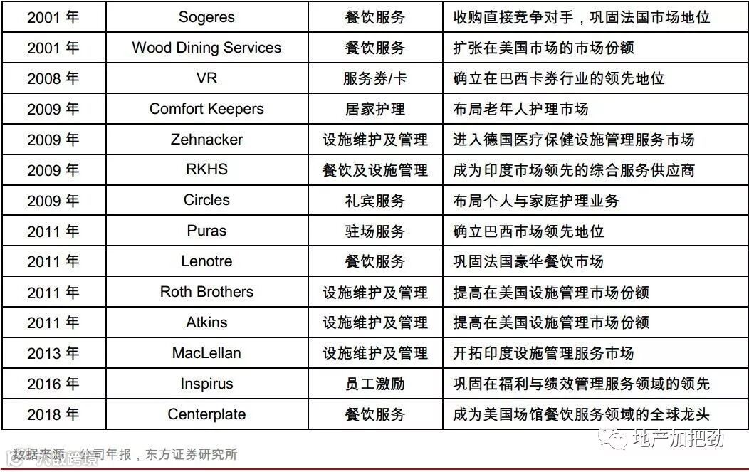 1)通过并购扩张服务范畴和提升服务能力。公司通过收并购实现了业务范围的扩张,例如资材采购和自动售货机运营则是在收购了CERTO公司后开展的。针对原有的保洁、商业设施管理等业务,公司则进行了多宗能力提升型的收并购。