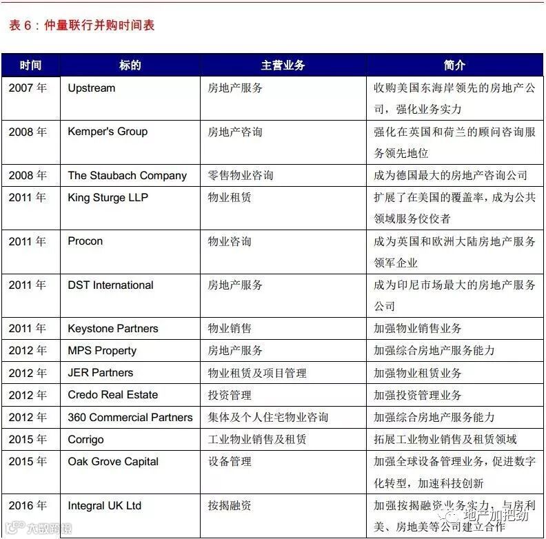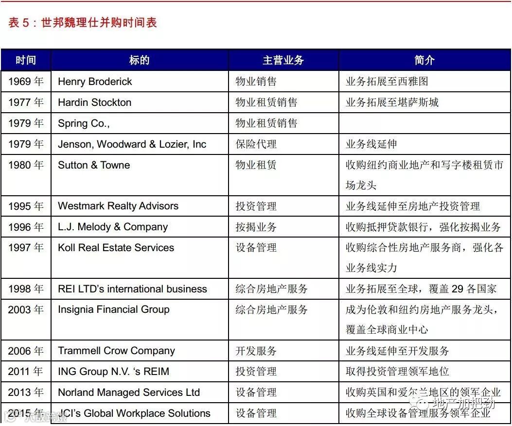 梳理世邦魏理仕公司长达50年的并购历史,我们可以发现如下规律: