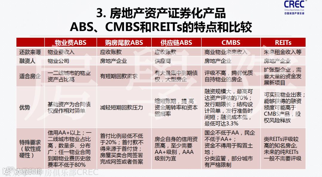 03 房地产资产证券化产品ABS、CMBS和REITs的特点和比较