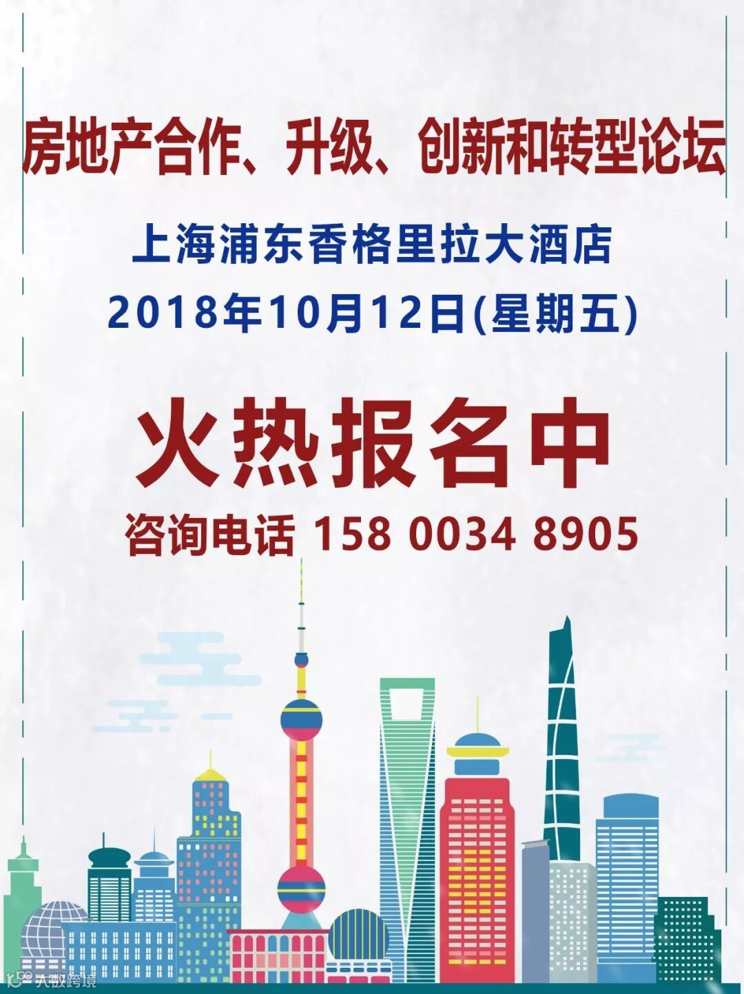 【邀请函•上海浦东香格里拉大酒店•2018年10月12日】 房地产合作、升级、创新和转型论坛