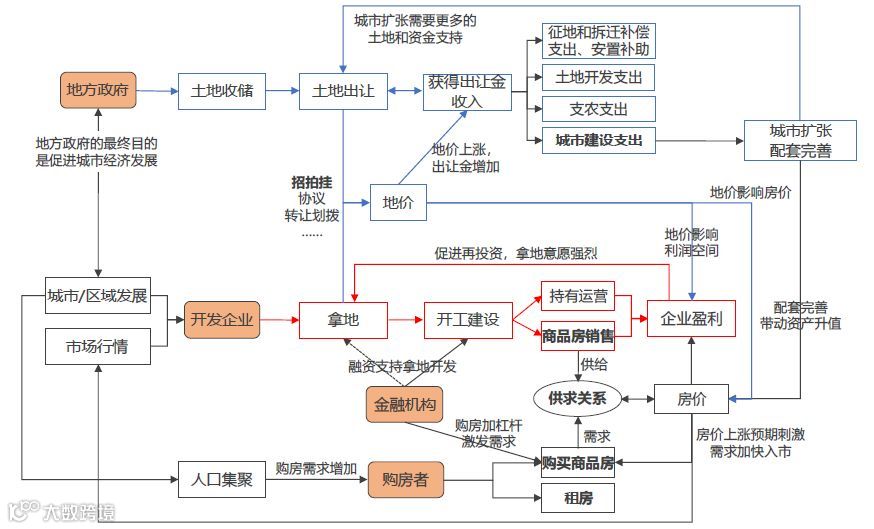 正常情况下,城市通过发展产业并完善基础设施带动资产升值,同时吸引人口流入,进而产生新的购房需求,带动房地产实现平稳增长。但在实际市场运行中,政府与其他市场主体一样,有明显的顺周期市场行为,且地方政府作为土地唯一供应方,对市场节奏的影响力更为突出,因而对市场周期的影响也超过其他主体。