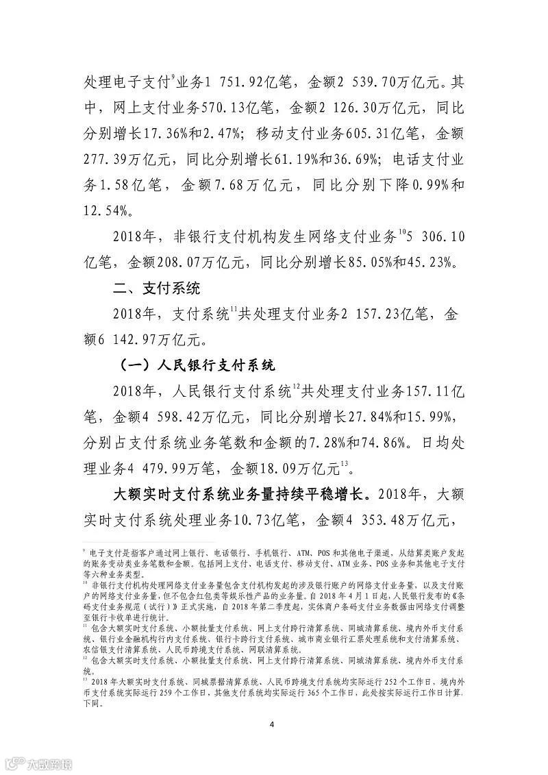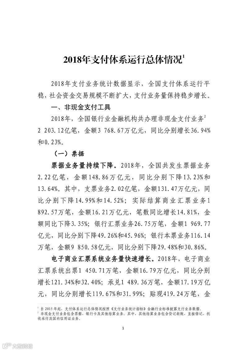 央行近期发布的2018年支付体系运行总体情况显示,2018年,全国支付体系运行平稳,社会资金交易规模不断扩大,支付业务量保持稳步增长。