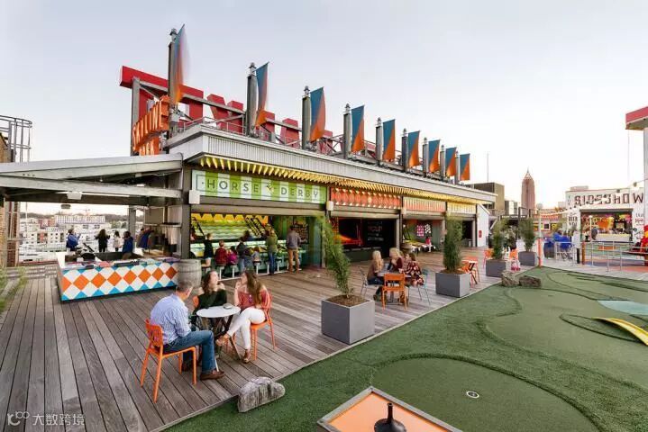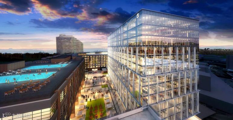 此外,项目整体还含有一栋提供259套单元住宅的The Flat公寓大楼、引入TechStars等新兴创新企业和Industrious联合办公空间的写字楼,以及附有创新性的娱乐功能屋顶(如迷你高尔夫、啤酒花园、滑梯和婚庆租赁空间等设施)。