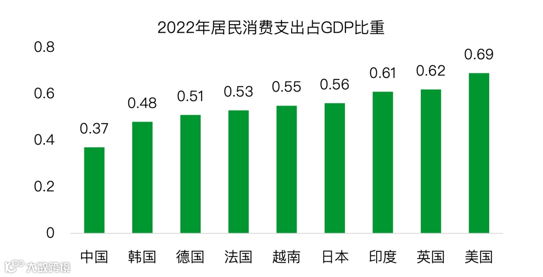 数据显示,英美等西方发达国家最终消费支出占比超过80%,日韩均在70%以上,中国近年来在50%左右,最终消费率相对较低。更进一步分析,消费支出包含居民消费支出和政府部门消费支出,中国居民消费支出占GDP的比重显著低于其他国家,我国居民消费的提升空间仍然很大,未来中国应以消费增长为世界经济提供新引擎。