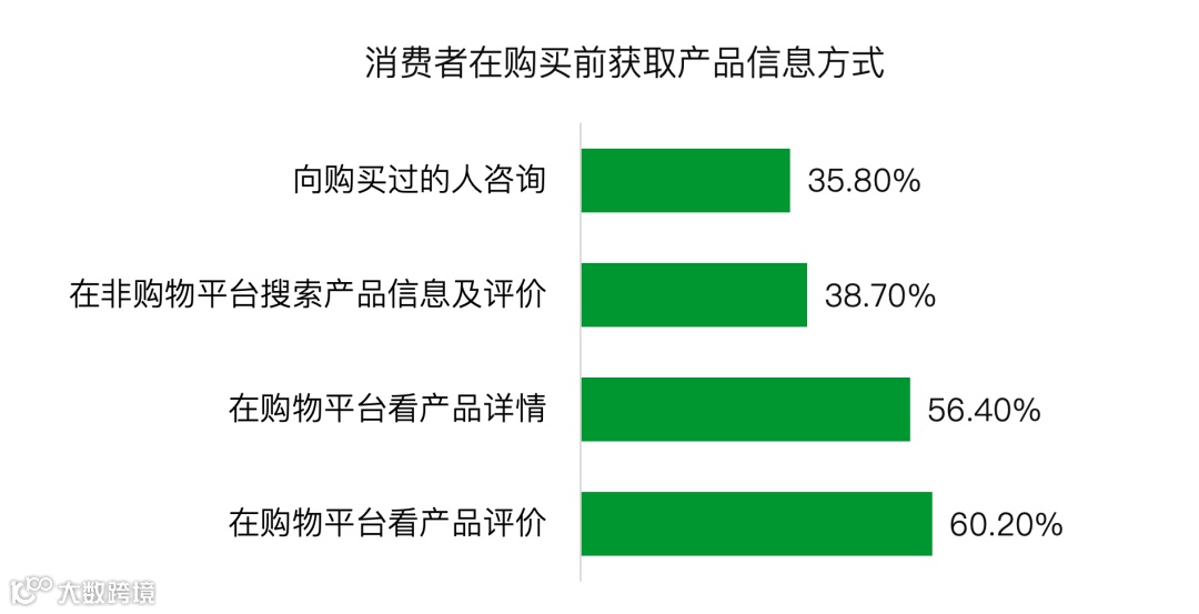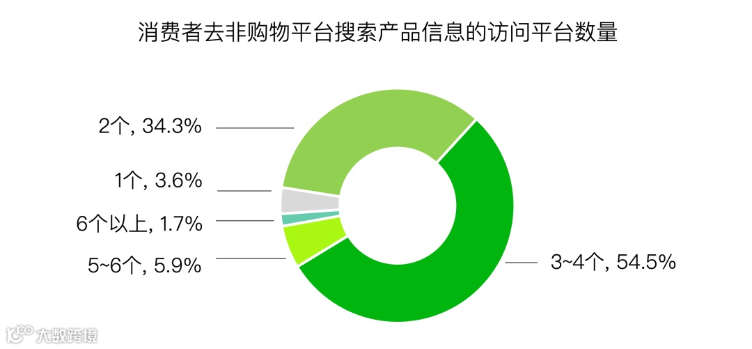 调研数据显示,超过半数的消费者买东西会货比三家和去平台查看优惠信息,有将近4成的消费者会选择在非购物平台搜索产品信息及评价,其中有超过90%的人会选择在两个或两个以上非购物平台搜索。
