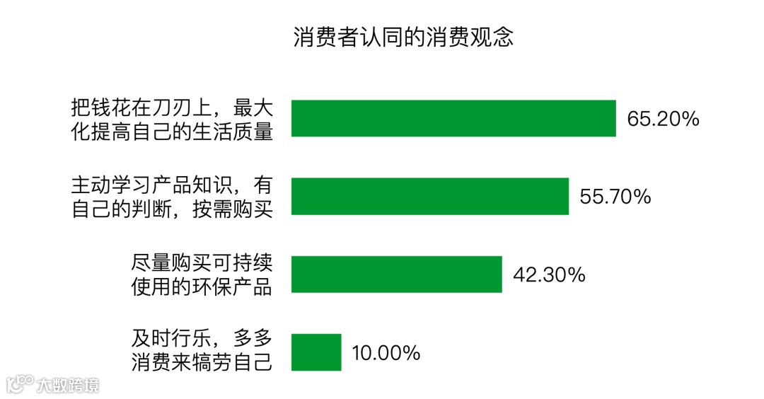 根据艾瑞咨询的消费者调研数据,有超过半数的消费者认可要把钱花在刀刃上,最大化提高自己的生活质量,也有超过半数的消费者会主动学习产品知识,按需购买。