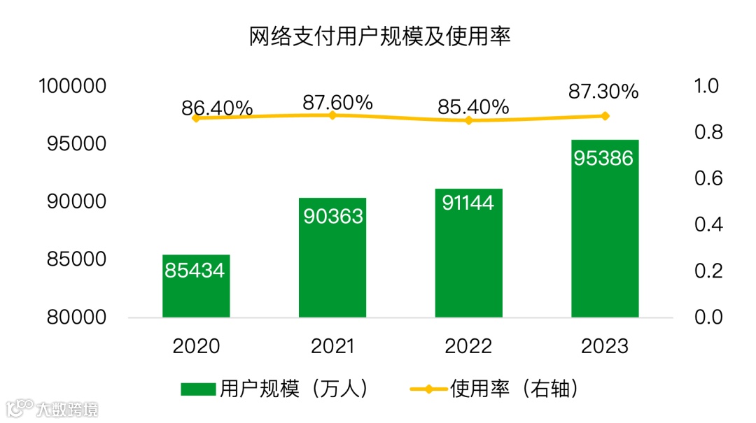 截至2023年,我国网络支付用户规模达9.54亿人,占网民整体的87.3%。网购用户规模达9.15亿人,占网民整体的83.8%。网购和线上支付会产生大量数据。据统计仅一杯奶茶订单就可生成87条数据,一家奶茶店就可以拥有百亿条数据。