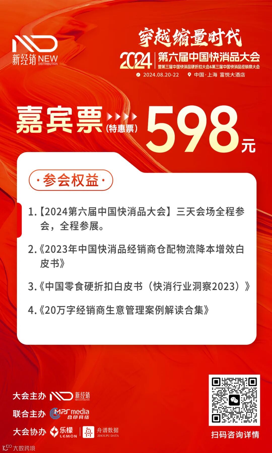 8月20日-22日,【穿越缩量时代】2024第六届中国快消品大会暨第三届中国快消品硬折扣大会&第三届中国快消品经销商大会,将在中国上海盛大启幕!