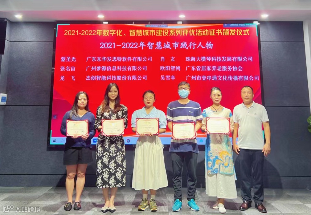 2022年9月29日,由中国(大湾区)国际智慧城市大会组委会、广东省云计算应用协会、广东省智慧城市产业技术创新联盟主办的“2021-2022年数字化、智慧城市建设系列评优活动”颁奖典礼在广州大学城顺利召开, 表彰了一批数字化、智慧城市建设领域中具有先进性、实用性、社会性和推广性的新产品、新技术、新应用、新方案及有典范引领作用的企业和人物。