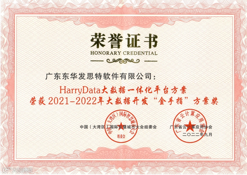 01 HarryData大数据一体化平台荣获“2021-2022年度大数据开发‘金手指’方案奖”