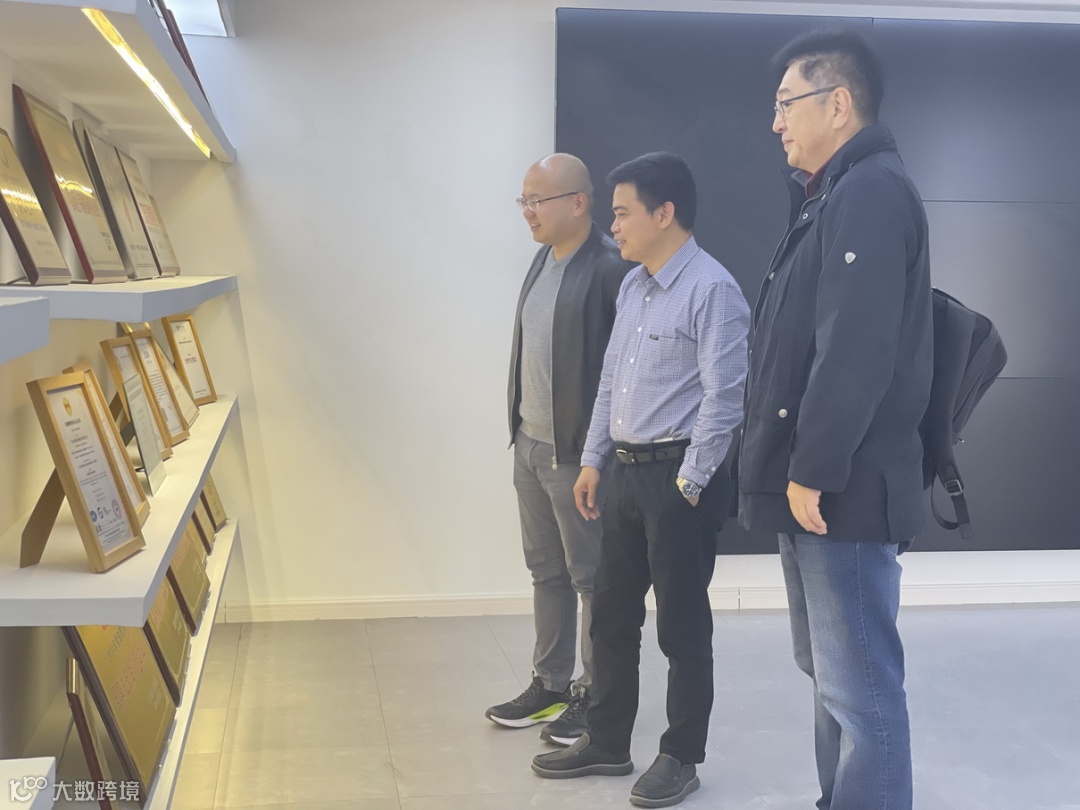 在蒙圣光的带领下,毛旭东博士一行首先参观了公司的科技展厅与办公环境,了解公司情况与成功案例。在交流会上蒙圣光全面讲解了公司情况和核心产品,并表示在大数据与物联网平台之上,东华发思特将持续打造面向农业农村、文化旅游、教育等应用场景的AI核心算法,希望和中山大学人工智能学院、珠海科技学院在AI算法研究、科研项目申报、关键技术联合攻关等方面展开合作。