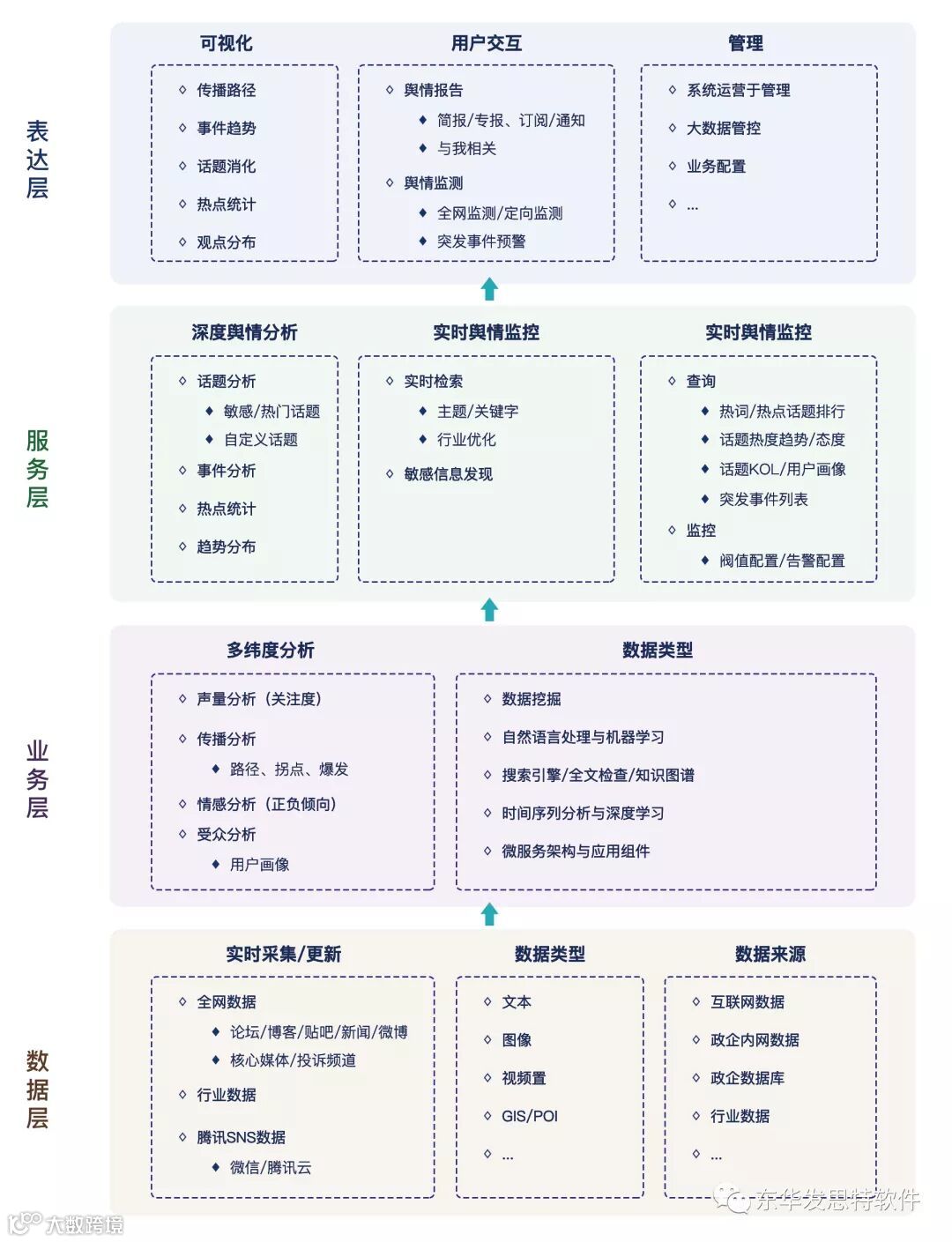 东华舆情分析师是东华智慧城市集团基于自身在舆情方面的研究基础及腾讯云舆情大数据的服务能力,充分结合双方优势,共同研发的舆情监测平台产品,集监测、预警、分析、报告于一体的强大功能,其产品目标是建设一套适合政务部门实际情况、量身定制的网络舆情监控系统和网络舆情应对体系。