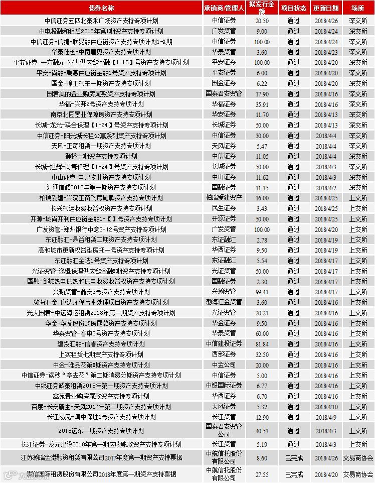 附表1 交易所2018年4月新发行资产支持证券基本信息