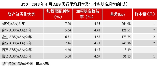 ABN中,三年期优先级AAA级样本为1期,发行利率为7.2%,比三年期企业债(AAA)高264.98bp。