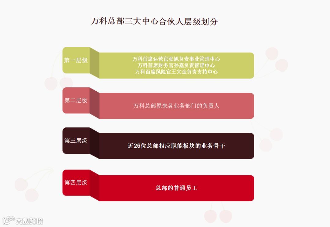 万科总部新成立的三大中心都设置了合伙人,共分四个层级。